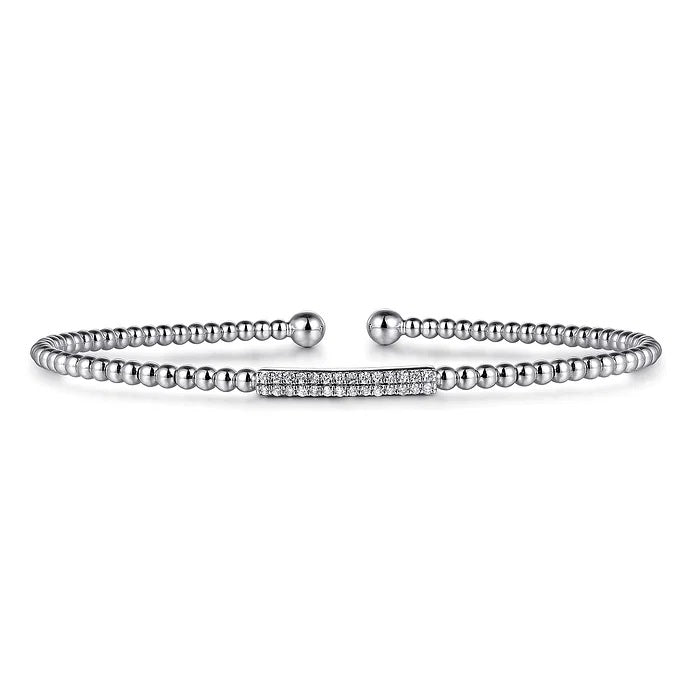 14K White Gold Bujukan Bead Bangle with Diamonds