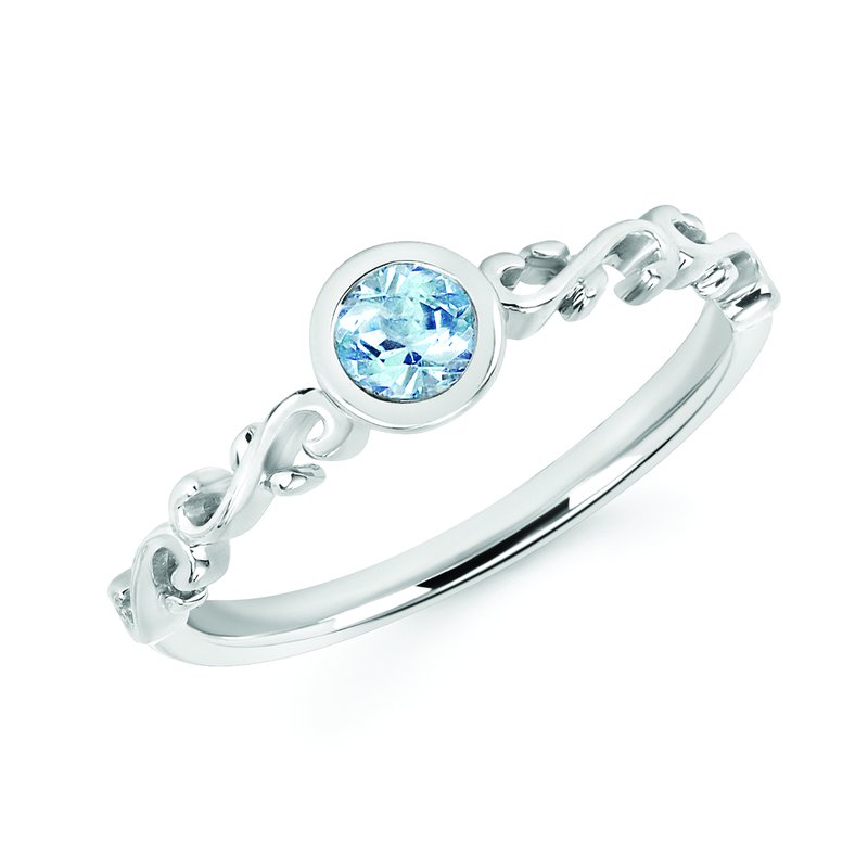 Elevate your ring collection with this sophisticated stackable design crafted in 14 karat white gold with a rhodium finish for enhanced durability and brilliance. The bezel setting secures a stunning 0.34 carat round blue topaz, showcasing its vivid color while protecting the stone. This versatile piece pairs beautifully with other rings for a personalized stacked look or stands alone as an elegant statement. The rhodium plating ensures a bright, long-lasting luster that resists tarnishing, making it an ideal choice for everyday wear or special occasions.