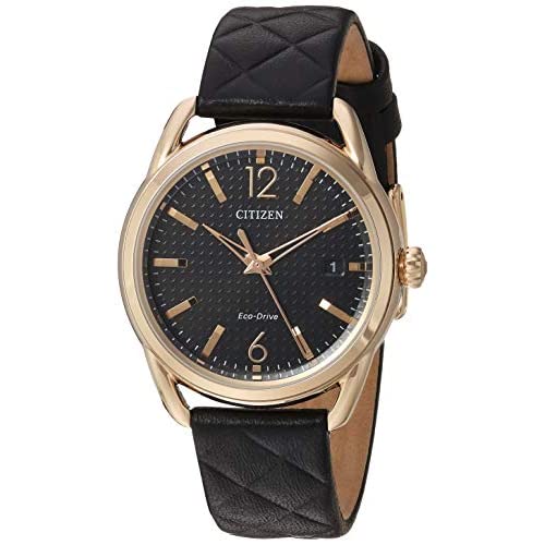 Think Sleek, Stylish And Always On Time. The Brand New Drive From Citizen Collection Holds Affordable Fashion To A New Standard With This Fresh New Look. A Watch Conceived For The Every Day Wearer, Day To Night, Work To Play. The Ltr, A Reliable Timeless Watch That Is Powered By The Light Around You With Eco-Drive Technology. Featured Here In A Rose Gold-Tone Stainless Steel Case, Stylish Quilted Black Strap, Black Dial And Rose Gold-Tone Accents.Featuring Our Eco-Drive Technology – Powered By Light, Any Light. Never Needs A Battery. Caliber Number J810.