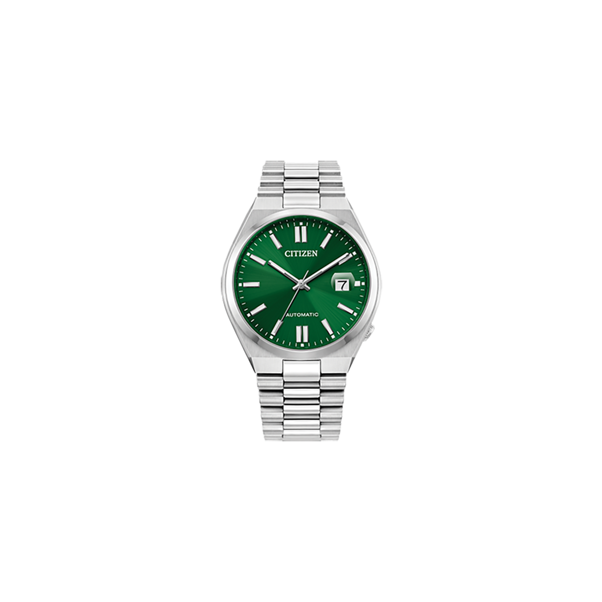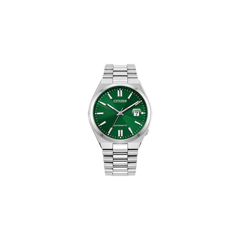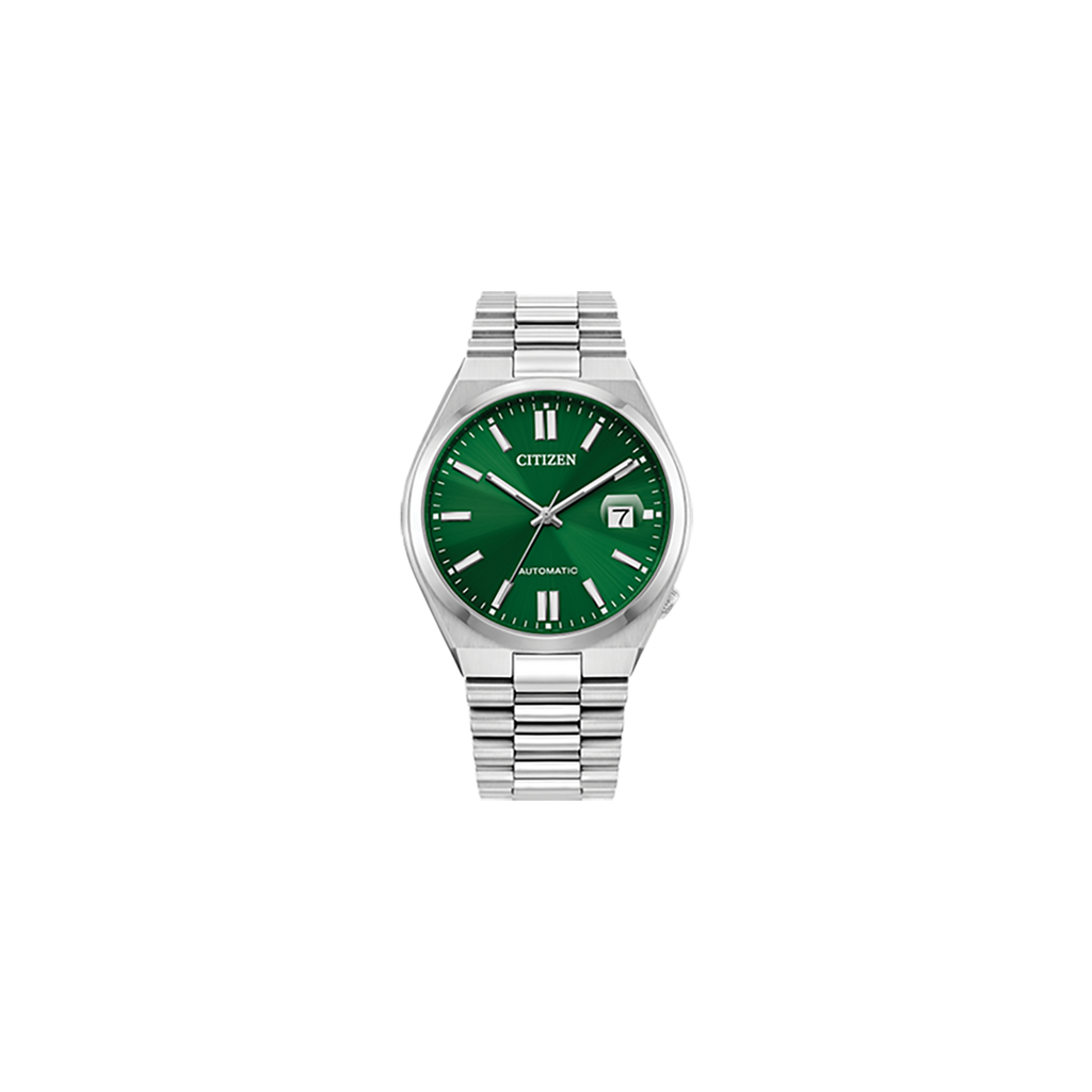 The "Tsuyosa" Automatic, from the NJ015 series, brings ultramodern sports styling right to your wrist. Executed in a versatile 40mm footprint, the sophisticated design of the watch makes a strong impression via a silver-tone stainless steel case and a seamlessly integrated, matching bracelet. Underneath an anti-reflective sapphire crystal, the sporty timepiece makes use of a sunray green dial, with a 3 o’clock date window and contrasting silver-tone details adding to its classic aesthetic. Powered by an automatic movement and offering up to 50 meters of water resistance, the refined timepiece is a daily wearing choice ready for work, play, and everything in between. Caliber 8210.