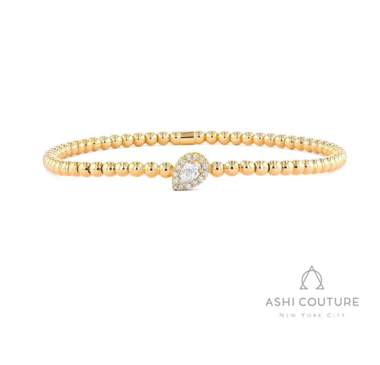 YELLOW 18 KARAT COUTURE BEAD WITH PEAR-SHAPED HALO CENTER STRETCH BRACELET ONE = 0.10CT PEAR G/H VS2 DIAMOND