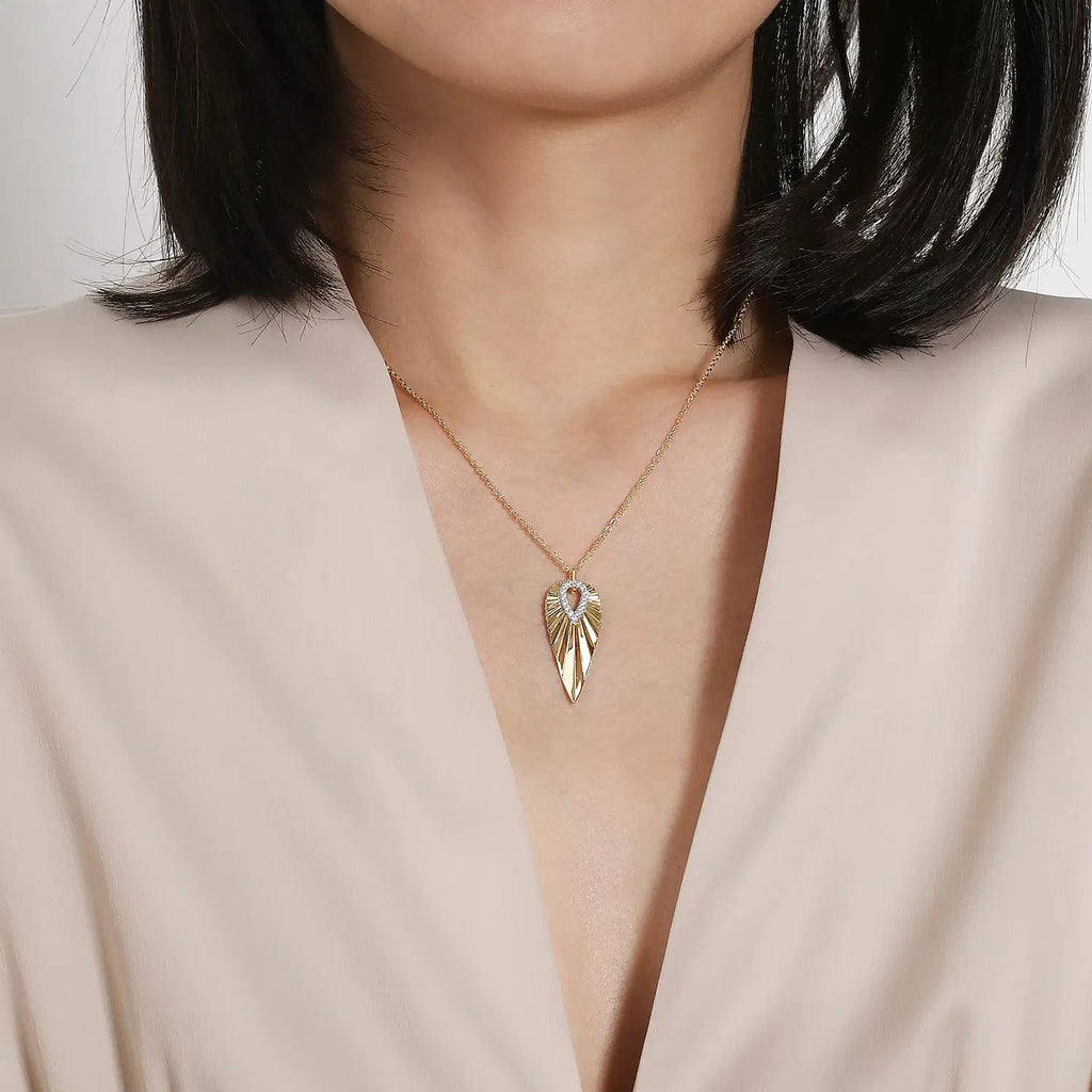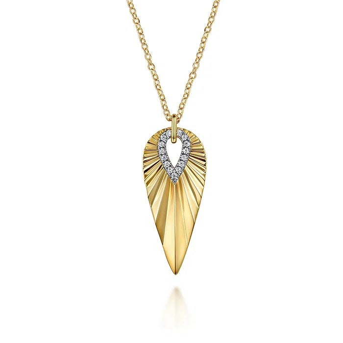 TWO-TONE 14 KARAT DROP GEM ACCENT NECKLACE LENGTH 18 = 0.15TW ROUND H/I SI2 DIAMONDS DESIGN BY: GABRIEL NEW YORK