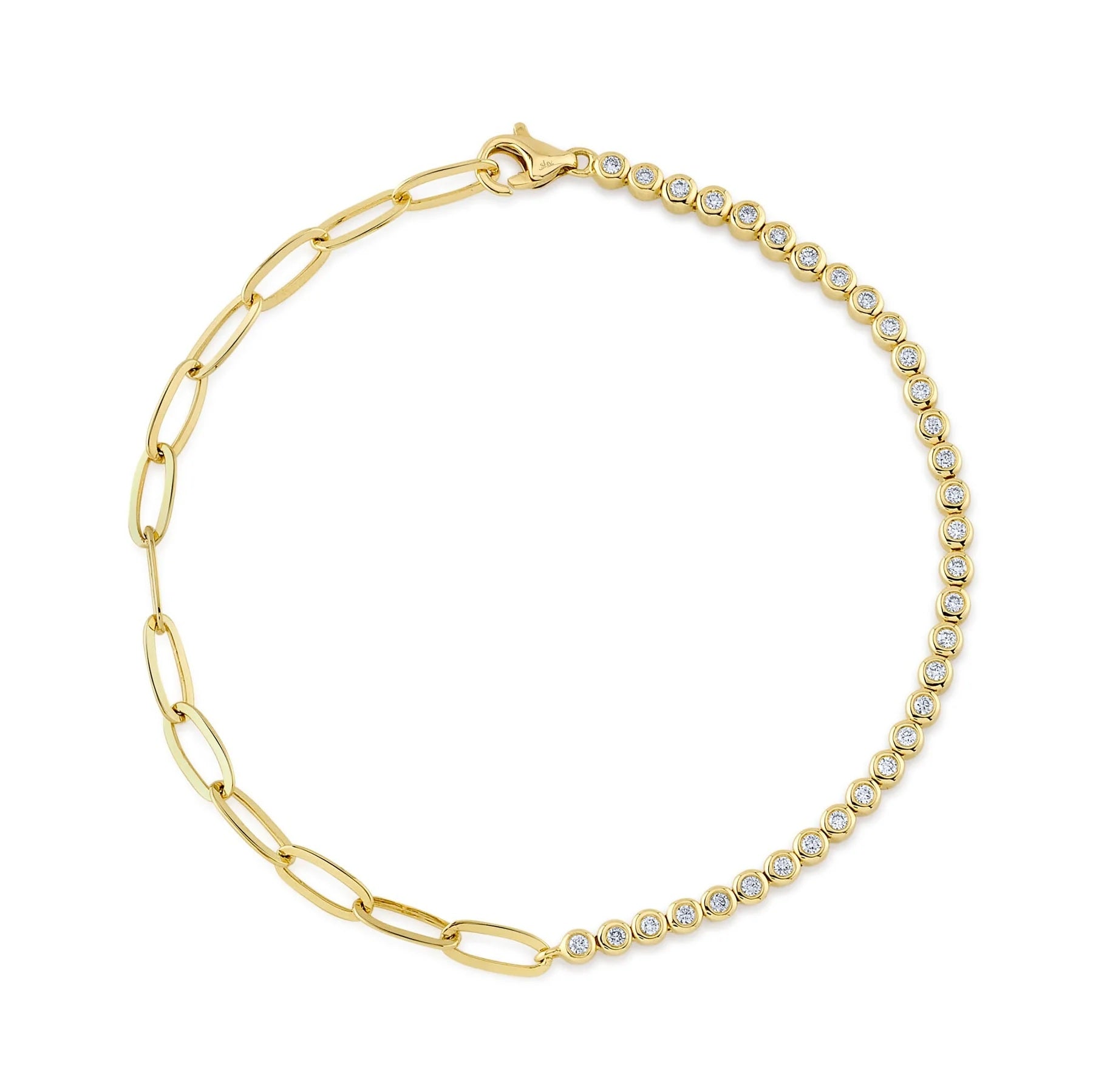 YELLOW 14 KARAT BEZEL SET GEM AND PAPERCLIP LINK BRACELET = 0.31TW ROUND H/I SI DIAMONDS