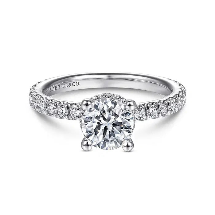Introducing the Diamond Engagement Ring by Gabriel New York. With a white 14 karat rhodium finish and comfort fit prong set gems, this ring is both elegant and durable. The hidden halo and 0.56TW round side diamonds add a touch of sparkle, while the 1.50CT round SI1 center diamond is GIA certified. Perfect for making your engagement a moment to remember.