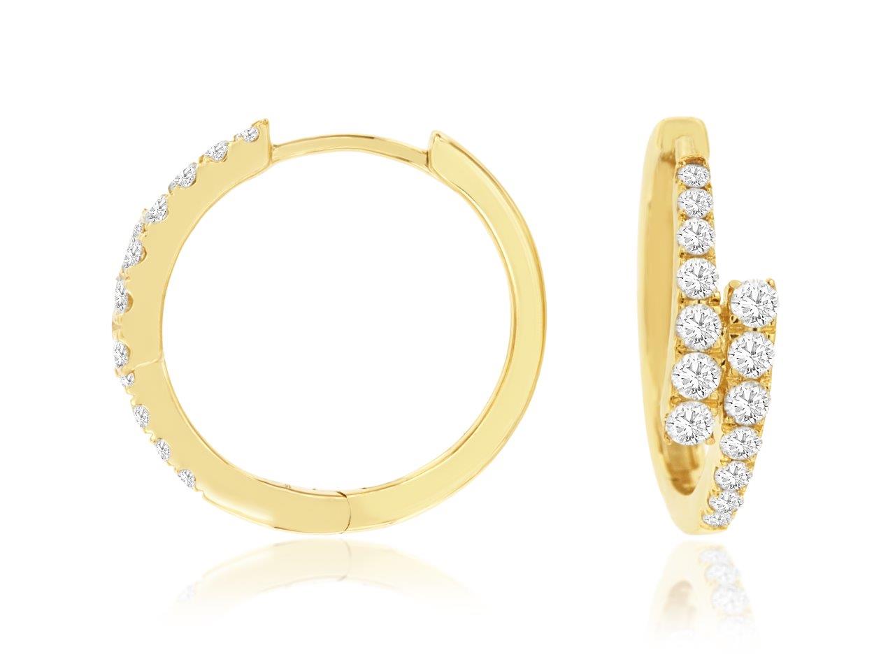 Elegant yellow 14 karat gold huggie earrings featuring 0.51 carats of sparkling round diamonds. These classic hoops offer a refined, versatile look that transitions seamlessly from everyday wear to special occasions. The secure huggie design keeps them comfortably in place while the brilliant diamond setting catches light beautifully. A timeless addition to any jewelry collection.