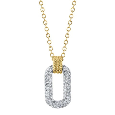 A Dazzling Oval Link Is Enveloped In Brilliant Round Diamonds In This Eye-Catching Women's Necklace From Shy Creation®. Fashioned In 14K Yellow Gold And 14K White Gold, The Total Diamond Weight Is 1/6 Carat And The 18-Inch Rolo Chain Secures In Place With A Lobster Clasp.