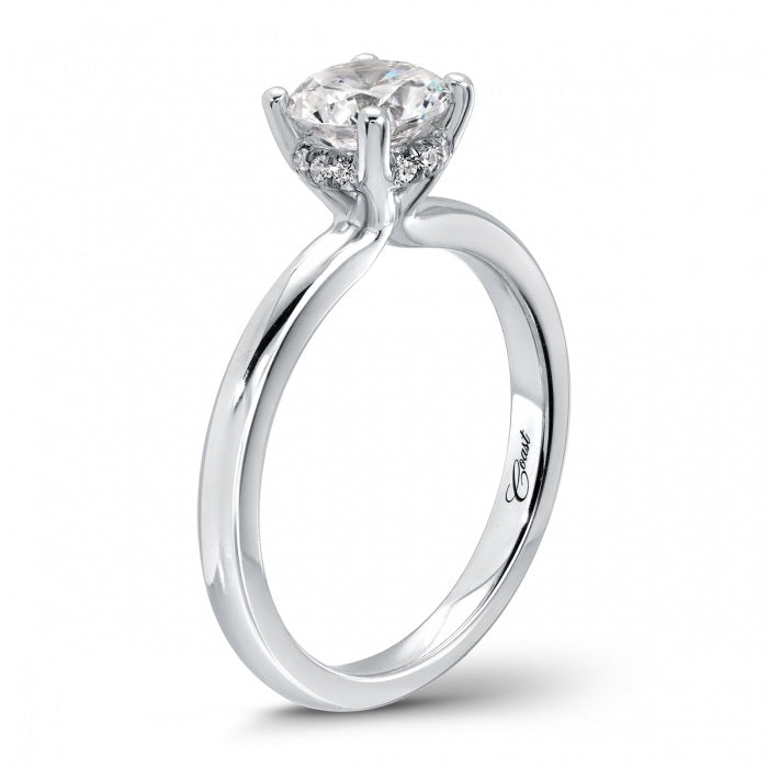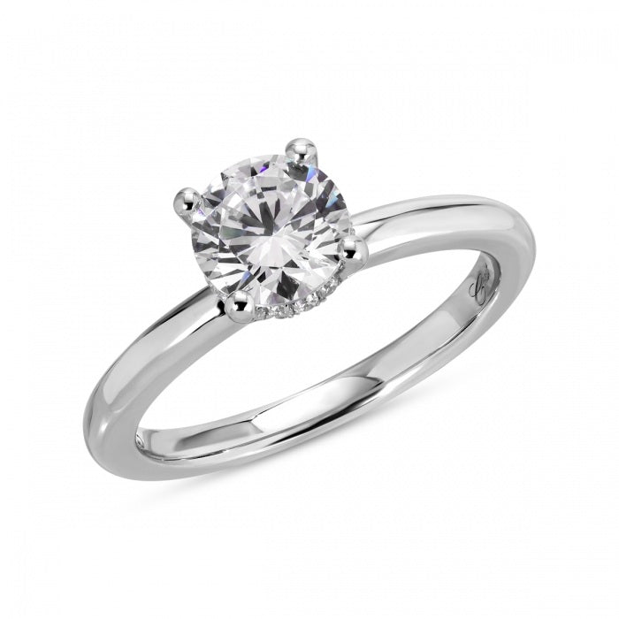 This quintessential solitaire features a sparkling hidden halo which adds another level of sophistication.