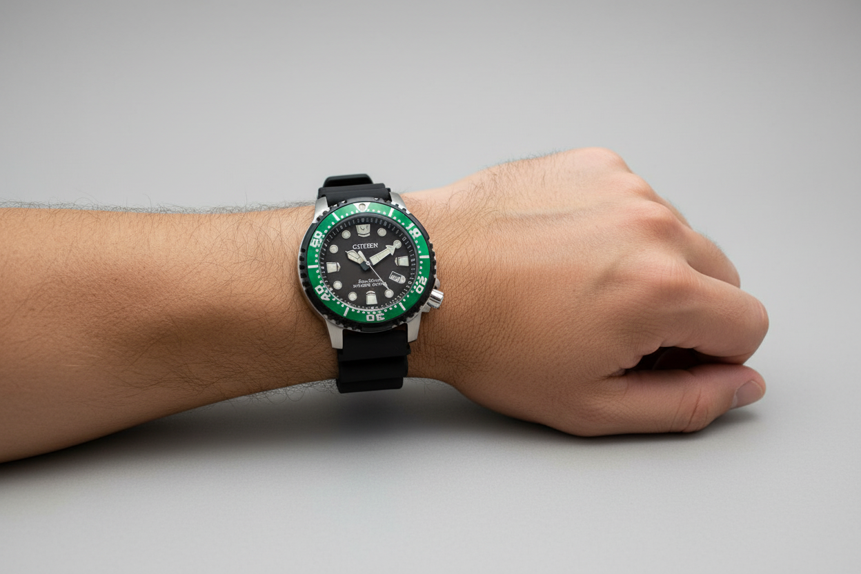 For Anyone Looking For The Perfect Waterproof Watch, The Promaster Dive From Citizen Is The Right Choice. Iso Rated For Depths Up To 200 Meters, This Men’S Dive Watch Features A Stainless Steel Case And A Black Polyurethane Strap. The Black Dial Is Framed With A Green, One-Way Rotating Bezel, And Features Luminous Hands And Markers. And You’Ll Never Have To Worry About Running Out Of Battery Life, Since The Dive Watch Is Sustainably Powered By Light With Eco-Drive Technology. Whether You Want O Explore Oceans, Swim In Rivers, Or Just Enjoy An Afternoon In A Swimming Pool, This Watch Will Look Great And Never Miss A Beat.