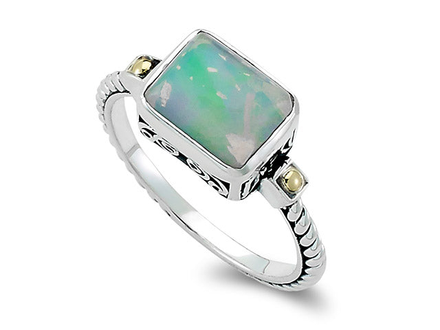 Our Sterling Silver and 18k gold emerald cut ring with opal, handcrafted in Bali by our skilled artisans. From our signature collection, Royal Bali™ featuring designs handcrafted using sterling silver, solid 18k gold accents and genuine gemstones. The February birthstone, Amethyst, is said to strengthen relationships and give its wearer courage. At one time, only royalty could wear the gem.