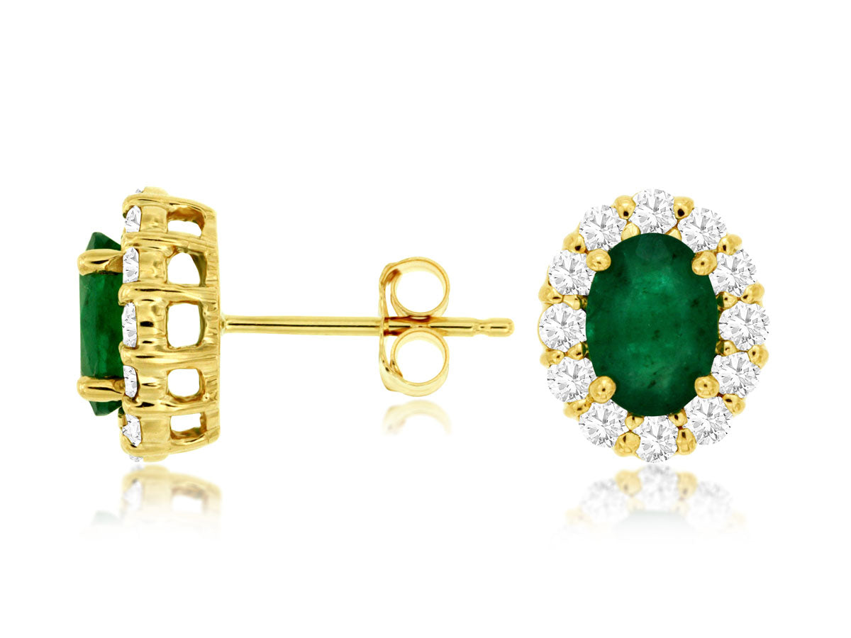 YELLOW 14 KARAT GEMS ON HALO, SHARED PRONG, POST EARRINGS 2 1.40TW OVAL EMERALDS