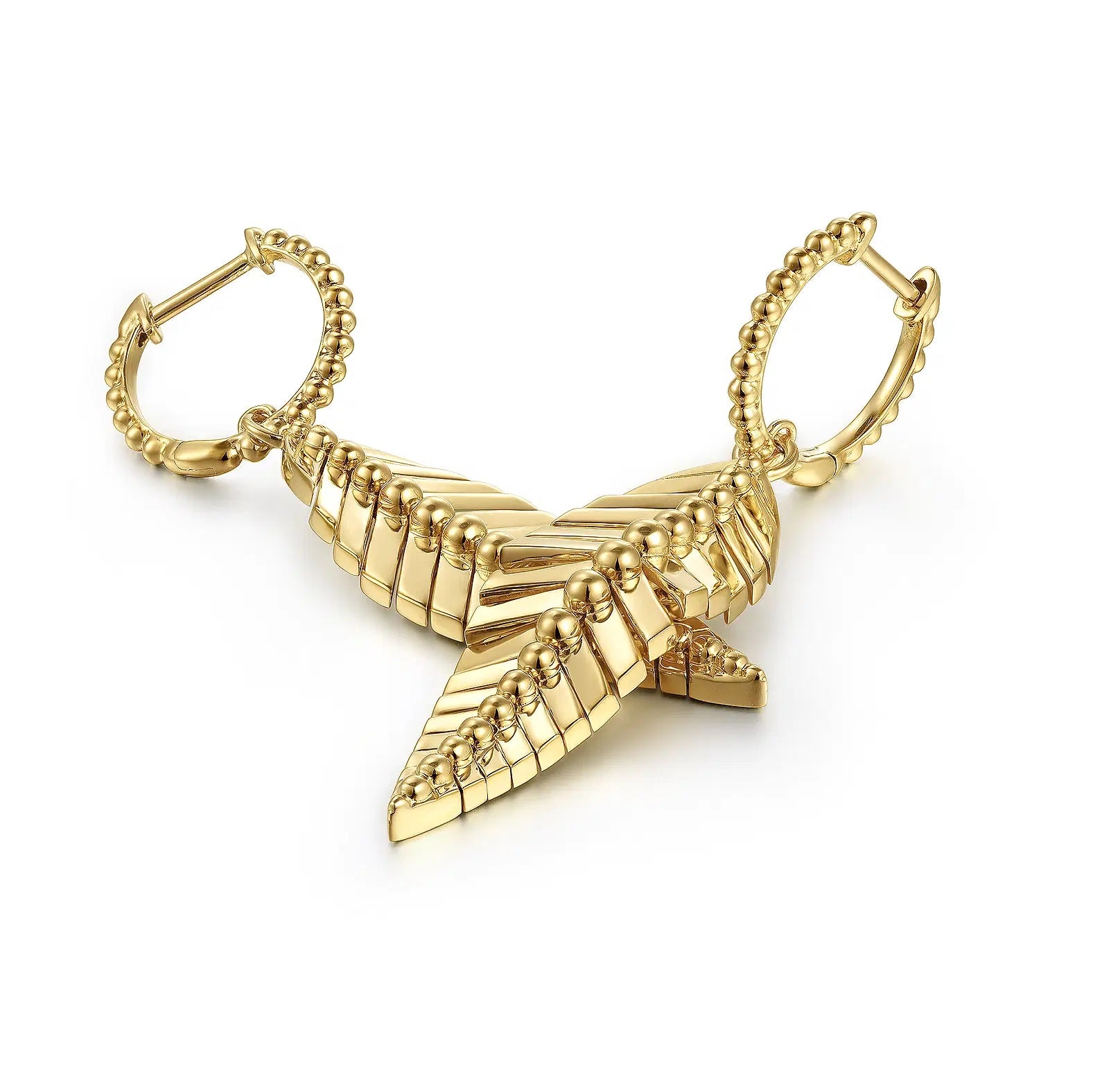 Elevate your jewelry collection with these expertly crafted 14K yellow gold huggie earrings from Gabriel NY. Featuring a refined drop leaf design, they combine classic elegance with contemporary style, making them perfect for daily wear or special occasions. The smooth, polished finish enhances their luxurious appeal while ensuring comfortable wear. These earrings seamlessly blend timeless craftsmanship with modern sophistication for a distinctive look.
