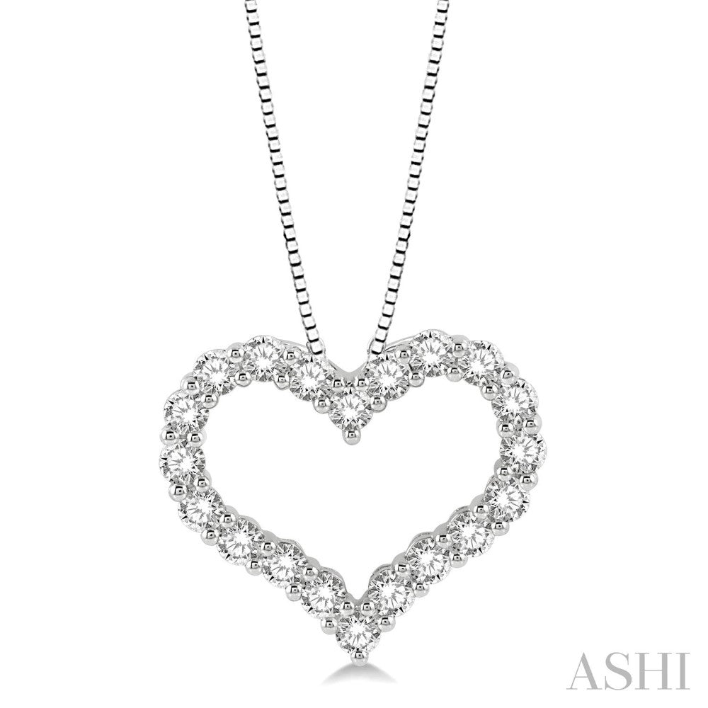 A Diamond Heart Pendant, This One Has A Great Appeal. With Just A Heart Shape Border And Hollow Center, It Offers A Delicate Look To The Pendant. The Heart Pendant Is Embellished With 20 Prong Set Round Cut Diamonds That Line The Top And Provide A Sparkling Touch To The Dainty Heart Shape Pendant. A Cat 18-Inch Cat Chain Necklace Comes Included To Carry The Pendant. Both Cat Chain And Heart Pendant Are Crafted In 14 Karat White Gold. Total Diamond Weight Is 1 1/2 Ctw.