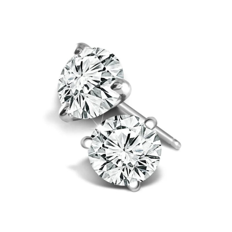 WHITE 14 KARAT RHODIUM FINISH LAB CREATED THREE PRONG MARTINI SET STUDS * 2=2.00TW ROUND F SI1 DIAMONDS