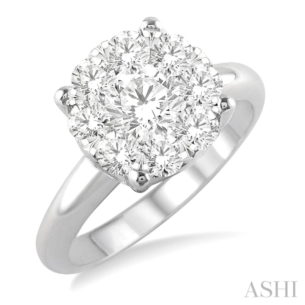 Mesmerize Her With The Everlasting Elegance And Eternal Shine Of This Ravishing 14 Karat White Gold Lovebright Diamond Ring. Featuring An Invisible Set Round Cut Diamond At The Centre Haloed By 8 Round Cut Diamonds, Perfectly Invisible Set. Total Diamond Weight Is 1 1/2 Ctw.