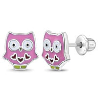 You'll love the compliments each time your little princess wears these whimsical owl enameled sterling silver earrings. A colorful and fun addition to their jewelry collection! These earrings are made of 925 sterling silver, making them naturally hypoallergenic and safe for sensitive ears. They feature threaded posts and a safety back system to ensure your child's earrings stay comfortably in place. A complimentary gift box is included for easy gift giving!