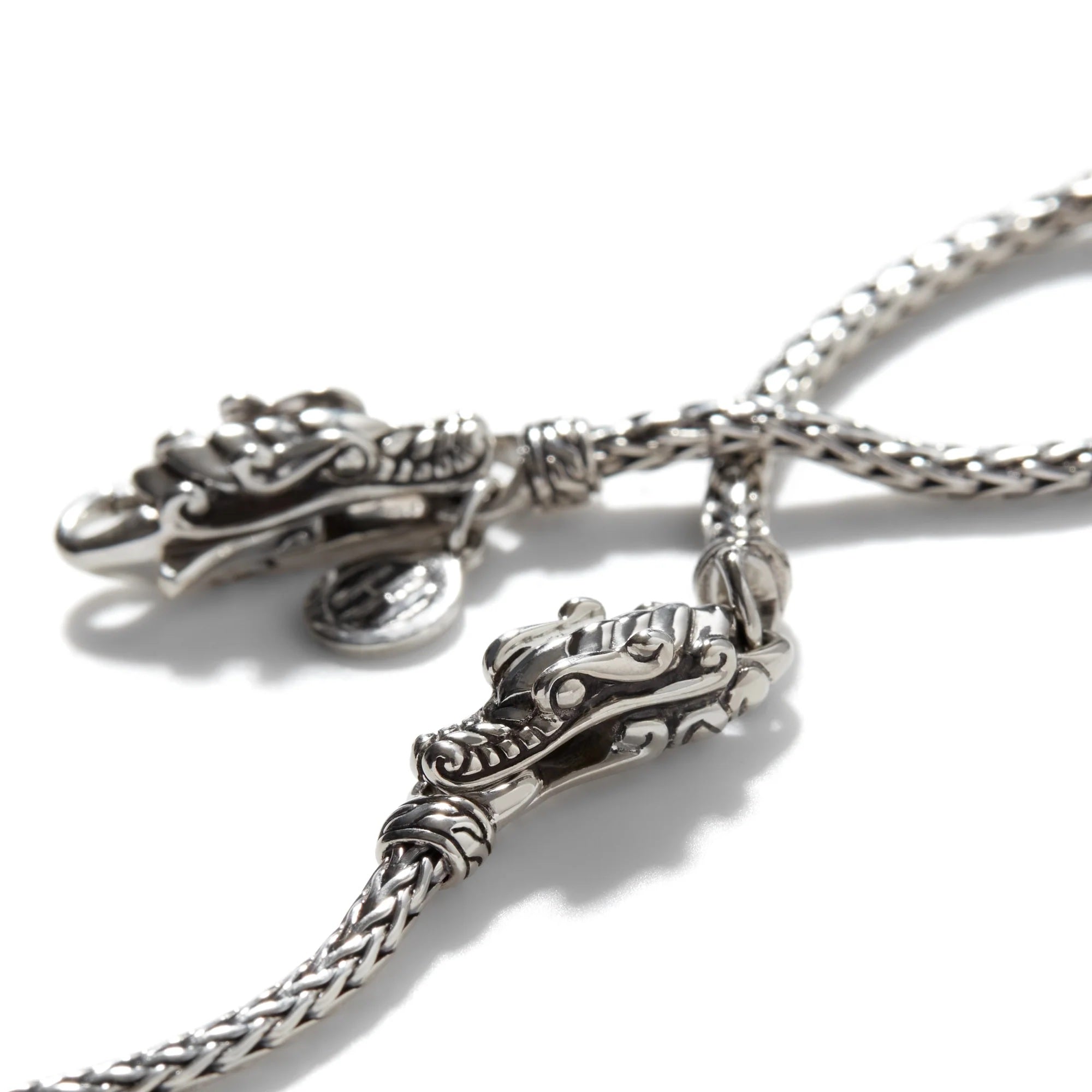 A figurative bracelet featuring our hand-carved Naga dragon—a legendary symbol of love, protection and prosperity. Artisan handcrafted in reclaimed sterling silver.