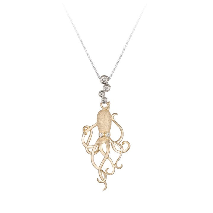 2 tone octopus with six diamonds totaling in 0.06 carats. Get yours today!