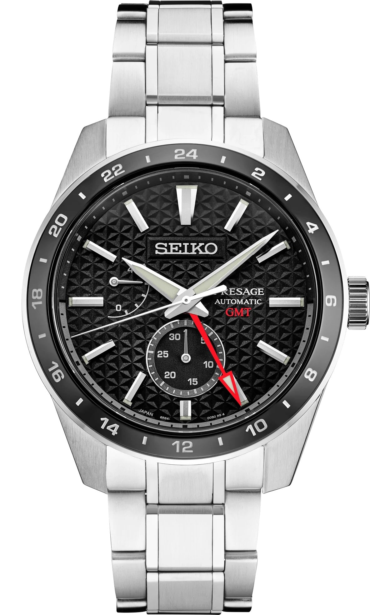 Offering The Finest In Japanese Mechanical Watchmaking, The Presage Collection Blends Precision Technology With Superior Craftsmanship And Design. Known For Unique Dials Reflecting Centuries Of Artistry, Presage Embraces The Fresh Look Of Contemporary Japanese Design With This Coolly Angular Timepiece. The Theme Of Energy Is Captured By The Intricate Dial Pattern, Based On The Traditional Asanoha Hemp Leaf Motif Of The Heian Period (794-1185 Ad), A Symbol Of Growth And Prosperity. Uniquely Shaped Lumibrite Hands And Stick Markers Add A Crisp Legibility To The Sumiiro Black Gmt Dial, With 24-Hour Gmt Hand, Power Reserve Indicator And Date Display. A Sapphire Crystal Includes Anti-Reflective Coating On The Inner Surface, While The Screwdown See-Through Caseback Provides A View Of The New Caliber 6R64 29-Jewel Automatic Movement With Manual Winding Capability, A Frequency Of 28,800 Vibrations Per Hour And A Power Reserve Of Approximately 45 Hours. With Clean, Sharp Angles To Highlight The Beauty Of The Material, This Bracingly Modern Watch Is Crafted Of Stainless Steel With Super-Hard Coating And Tri-Fold Push Button Release Clasp. 10 Bar, 100M Water Resistant