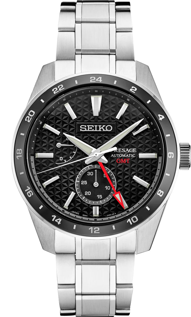 Offering The Finest In Japanese Mechanical Watchmaking, The Presage Collection Blends Precision Technology With Superior Craftsmanship And Design. Known For Unique Dials Reflecting Centuries Of Artistry, Presage Embraces The Fresh Look Of Contemporary Japanese Design With This Coolly Angular Timepiece. The Theme Of Energy Is Captured By The Intricate Dial Pattern, Based On The Traditional Asanoha Hemp Leaf Motif Of The Heian Period (794-1185 Ad), A Symbol Of Growth And Prosperity. Uniquely Shaped Lumibrite Hands And Stick Markers Add A Crisp Legibility To The Sumiiro Black Gmt Dial, With 24-Hour Gmt Hand, Power Reserve Indicator And Date Display. A Sapphire Crystal Includes Anti-Reflective Coating On The Inner Surface, While The Screwdown See-Through Caseback Provides A View Of The New Caliber 6R64 29-Jewel Automatic Movement With Manual Winding Capability, A Frequency Of 28,800 Vibrations Per Hour And A Power Reserve Of Approximately 45 Hours. With Clean, Sharp Angles To Highlight The Beauty Of The Material, This Bracingly Modern Watch Is Crafted Of Stainless Steel With Super-Hard Coating And Tri-Fold Push Button Release Clasp. 10 Bar, 100M Water Resistant