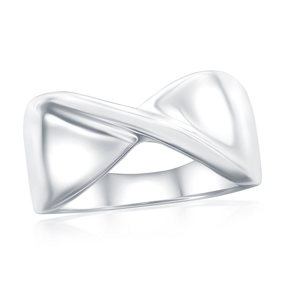 Elevate your ring collection with this striking sterling silver band featuring a polished X design that commands attention from every angle. The geometric criss-cross pattern creates dimensional depth while the high-polish finish reflects light brilliantly, showcasing the metal's natural luminosity. The flat profile ensures comfortable everyday wear and versatile stacking potential with other rings. Crafted from durable sterling silver, this contemporary piece bridges minimalist aesthetics with bold architectural appeal. An ideal standalone statement or layering essential for the modern jewelry enthusiast.