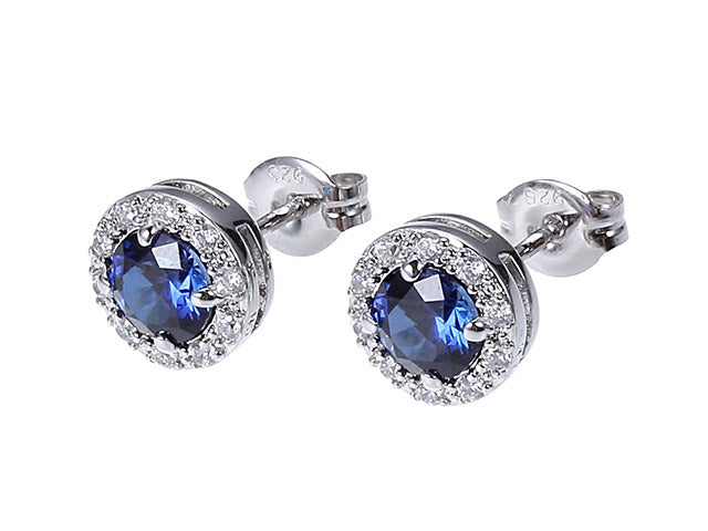 These sophisticated sterling silver earrings showcase genuine 5mm round tanzanite stones, each surrounded by sparkling white topaz for added radiance. Designed by Samuel B, the post setting ensures secure, comfortable everyday wear while the halo design amplifies the tanzanite's distinctive blue-violet brilliance. Perfect for those seeking a refined gemstone accessory that combines rarity with timeless elegance. An investment piece that elevates any ensemble with understated luxury and expert craftsmanship.