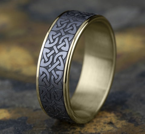 TWO-TONE 14 KARAT/ TANTALUM SATIN THIN EDGE QUATERNARY KNOT WEDDING BAND SIZE 10 RING WIDTH IN MM: 7.5