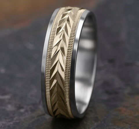 TWO-TONE 14 KARAT MILGRAINED THE DISTRICT WHEAT LIGHT WEDDING BAND SIZE 10 RING WIDTH IN MM: 7MM