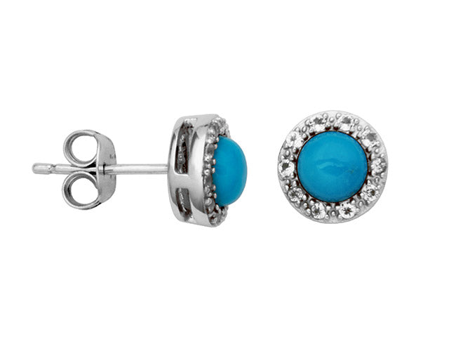 Expertly crafted from genuine Sleepy Beauty Turquoise and luxurious Sterling Silver, these Turquoise Halo Earrings are a true treasure for any jewelry collection. The 5mm Turquoise stones are beautifully accented by dazzling White Topaz, creating a stunning and elegant look. Elevate any outfit with these timeless and sophisticated earrings.