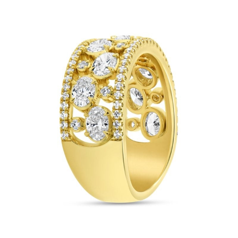 YELLOW 18 KARAT MUTLI ROW, OPEN WORK PRONG SET FASHION RING SIZE 6.5 69 = 0.42TW ROUND G VS1 DIAMONDS