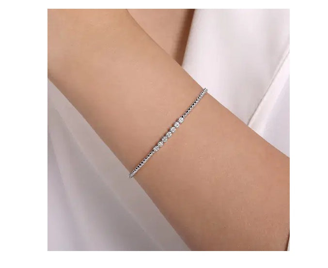White Gold Bujukan Bead and Cluster Diamond Bangle