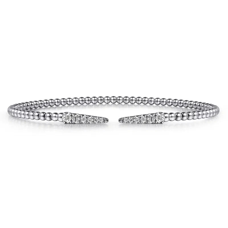 Lady's White 14 Karat Bujukan Bead Cuff With Pavé Spikes Bracelet Length 6.25